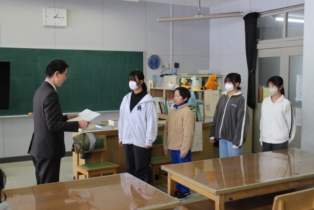 全校を代表して、情報委員会と6年生の子どもたちが、滝沢会長から目録と図書を直接いただきました。
