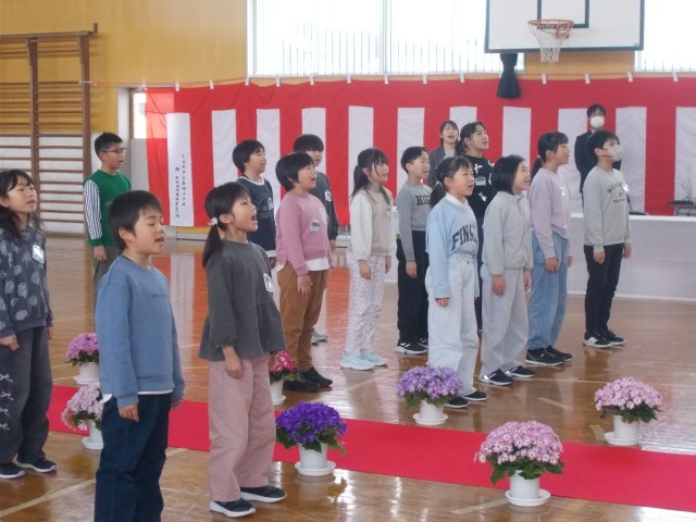 新しく3人の先生方をお迎えして、令和8年度がスタートしました。歓迎の意味も込めた校歌は、とても元気な歌声が響き渡りました。校歌の素晴らしさに転入職員は感動していました。