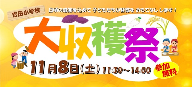 アントレプレナーシップ教育推進モデル事業として、子どもたちの「吉田地域の皆さんをおもてなししたい!」という願いをカタチにした「大収穫祭」を開催します。