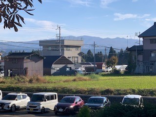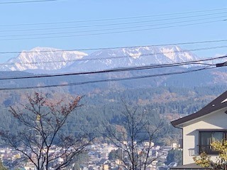校長室の窓からはいろいろな景色が見られます。今日の一番は、越後三山。真ん中の八海山が笑っています。雪の白い部分がウォーズマン風にニヤッと笑って見えるのです。左の越後駒ケ岳、右の中ノ岳も雪をいただいています。校庭に目を下すと、6年生が落ち葉を集めています。さすが6年生、学校のために働いてくれています。立派です。南に目を移すと、当間山が見えます。まだ、雪は積もっていないようですが、来週には白くなる予報が出ています。もうすぐ冬がやってきます。鐙島小学校の教育活動は、この冬に実りの季節がやってくるのです。
