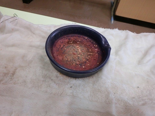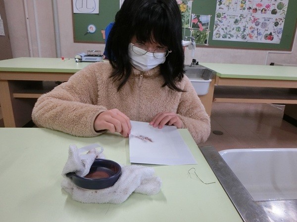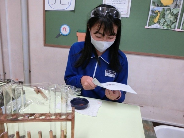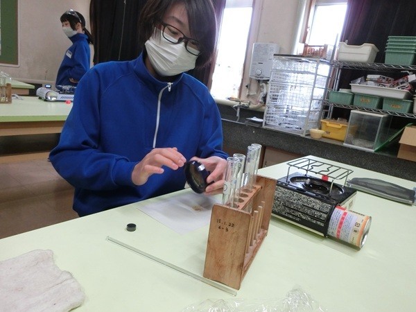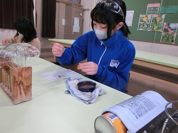 塩酸に入れたスチールウールが泡を出して小さくなっていき、全部なくなった。「スチールウールはどこにいったのか」と聞くと、「塩酸にとけた」とつぶやく子ども。水溶液にとけているスチールウールを取りだす実験をすることになった。鉄なので灰色や黒っぽい色で出てくると予想したが、黄色~茶褐色の物質が出てきた。鉄なら磁石に引き付けられると磁石を近付けてみるが全く引き付けられない。塩酸にとけているのは鉄ではない物質。子どもの疑問を整理して、必要な追求をおこなっていく。