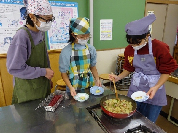 12月15日(月)今日、6年生が調理実習を行いました。今日は炒め物。包丁の扱いも安全にできました。ぜひ、お家でもやってみてくださいね。
