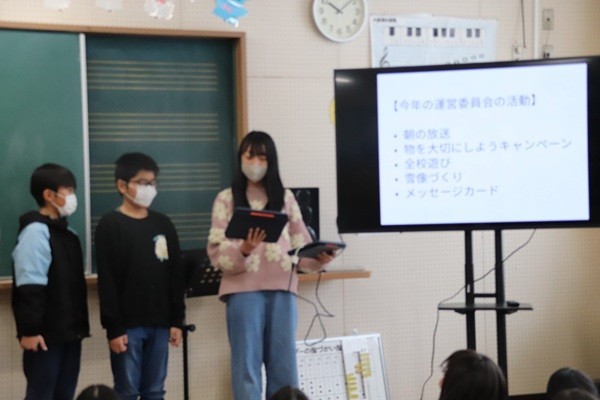 代休明けの今日、2月25日(水)に委員会の引継ぎ式を行いました。3つの委員会の活動報告の後、来年度委員長へのファイルの引継ぎを行いました。委員会活動は、子どもの自治的活動です。子どものアイデア次第で活発になったりならなかったりします。そして、それを支えるのは先生方です。あまり出すぎずに放置もしない絶妙な関わり方で子どもたちの主体性を引き出します。鐙島小学校の先生方は、非常に上手に関わってくださいました。感謝感謝です。