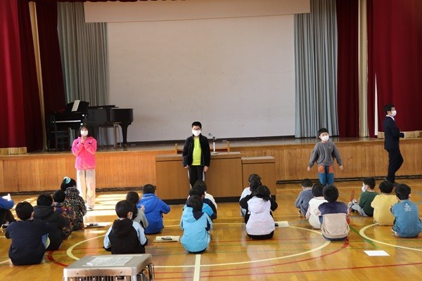 今日は3学期終業式。3名の児童が3学期を振り返る発表をしました。振り返ることは、自分の成長や学びの足跡を自覚することです。よかったことももっと頑張れたことも含めて自分自身。次の一歩を踏み出すための軸足を確かにすることにつながります。明日は、卒業式。午後から3~5年生が一生懸命、会場準備をしてくれました。きっといい卒業式になるはずです。心を込めて、6年生をお祝いしましょう。