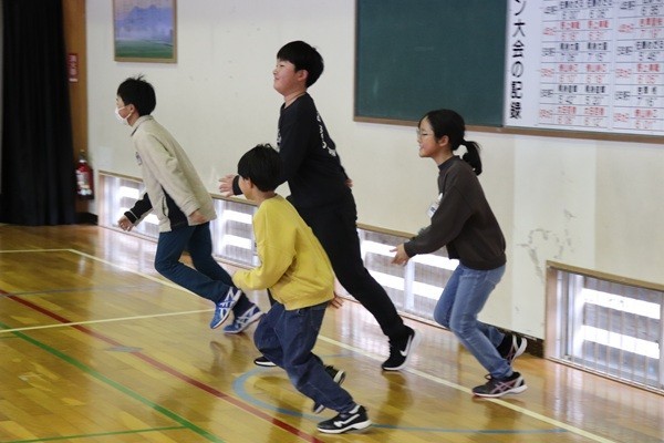 休み時間は、体育館から元気のよい声が職員室まで届きます。校時表の改善で昼休みを45分間から35分間に10分間短くし、下校時刻を早めましたが、昼休みが短くて嫌だーという声は、ほとんど聞かれません。時間いっぱい元気に遊ぶ子どもたちの姿に逆に元気をもらえます。1年生も遊びの仲間入りをしました。