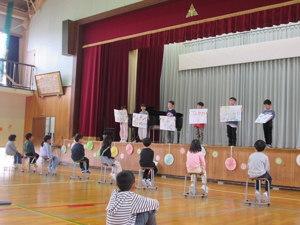 一年生を迎える会がありました。全校児童36名。一人一人が自分の役割をもって一年生を迎える会を作り上げました。「チャレンジでしょう」が今年の合言葉。自分の役割にチャレンジした子どもたちは、昨年度よりも一回り大きく見えました。一年生も立派です。話をよく聞き、お兄さんお姉さんと笑顔で一緒に活動できました。温かい雰囲気に感動しました。今年一年の一人一人の成長が今から楽しみで仕方ありません。