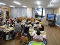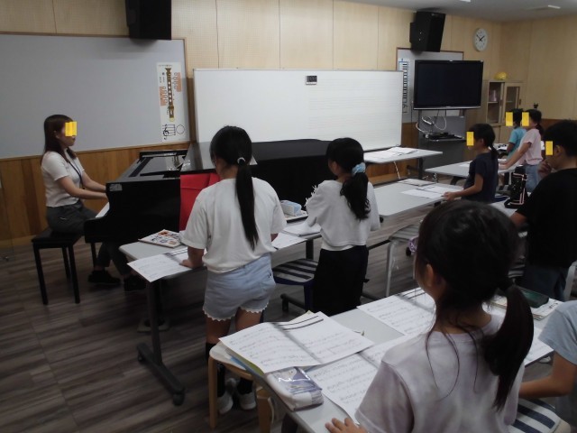 2年生の音楽の授業では、いつもと違う授業に子どもたちは一生懸命取り組んでいました。