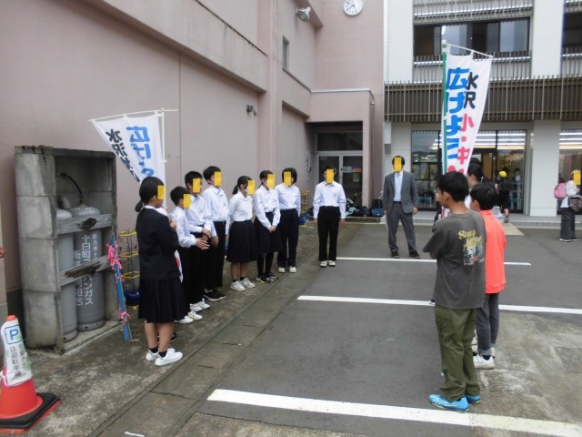 今日も中学生と一緒に元気にあいさつが交わされていました。