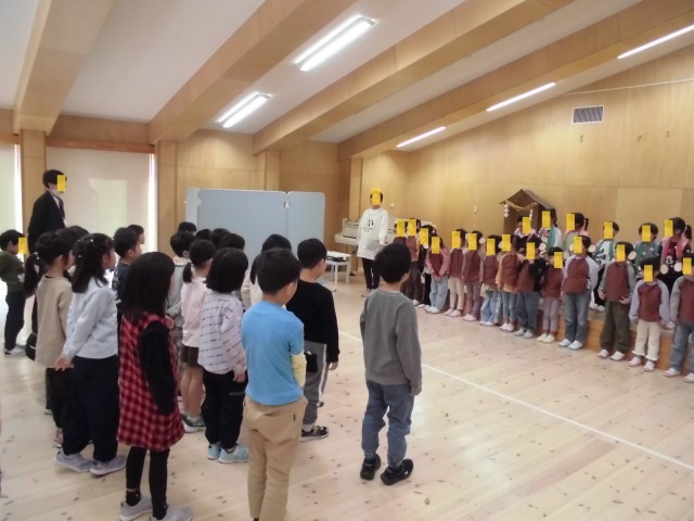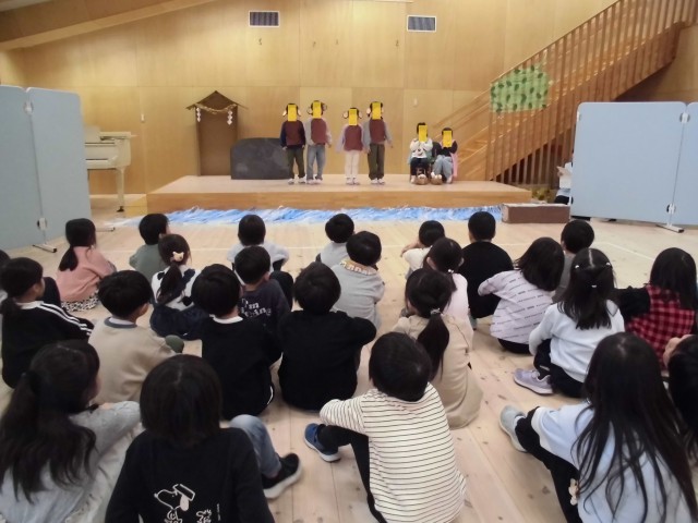 先日は、学習発表会の予行練習を、園児の皆さんから見てもらいましたが、今日は園児の発表会の予行練習を見に行かせてもらいました。