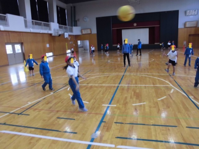 1年生はボールを使った体育の授業です。ボールを遠くへ投げる、速く投げる、正確に投げることを意識した学習を行っていました。