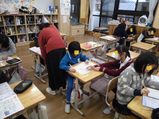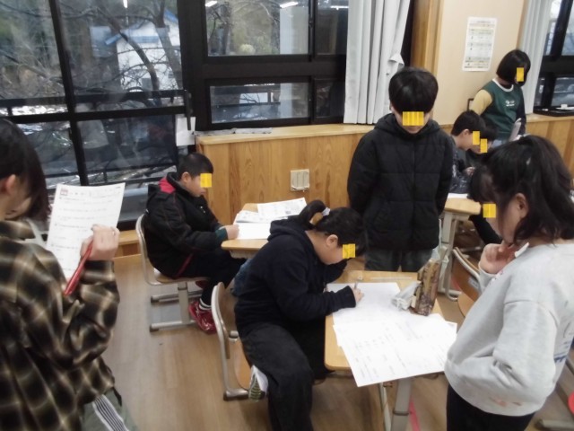 1年生から6年生までが縦割り班で、勉強を教え合う活動です。