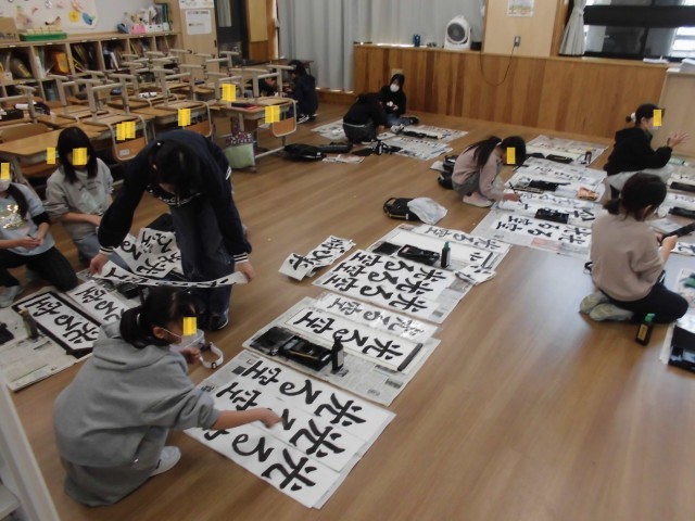 新年恒例の授業です。これからも他の授業や学習等で、書初めで培った集中力を活かしてもらいたいと思います。