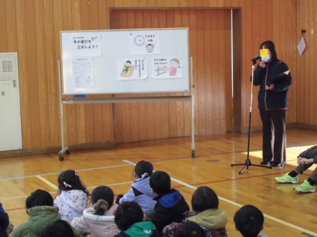最後に生活指導担当の先生と、生活委員会の児童により、1月の生活目標の発表と、気を付けて過ごすことなど、紹介がありました。