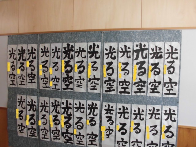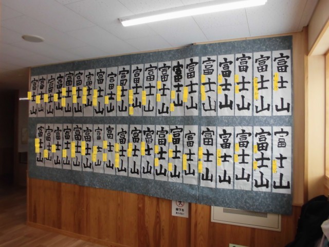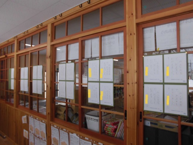年末年始に全ての児童が取り組んだ書き初めが、各学年フロアに展示されています。