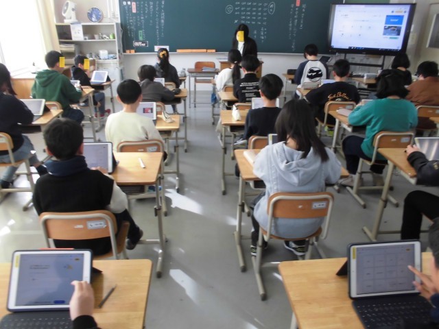 子どもたちは、体験授業として中学校の先生による国語の授業を受けました。