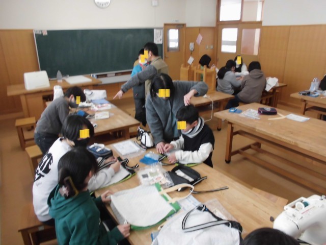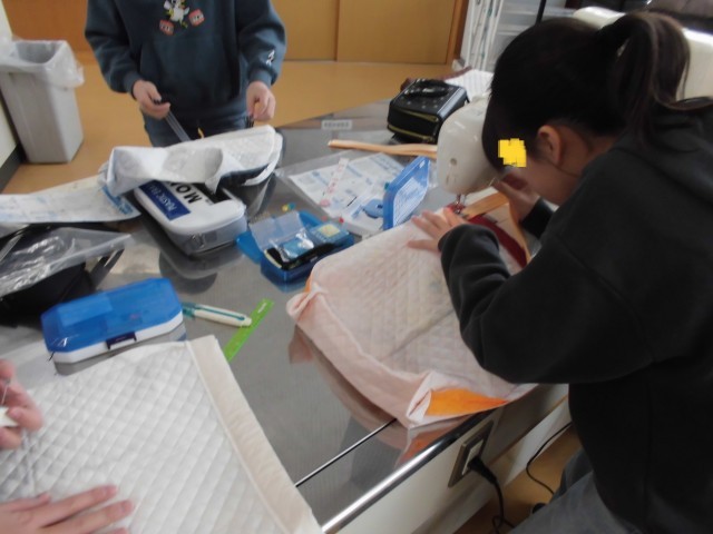 現在、ミシンを使った「手さげ袋」づくりを行っています。