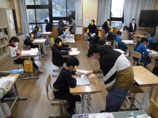 今日は各学級、個人の持ち物の片づけや持ち帰りの準備、掲示物の整理が行われていました。
