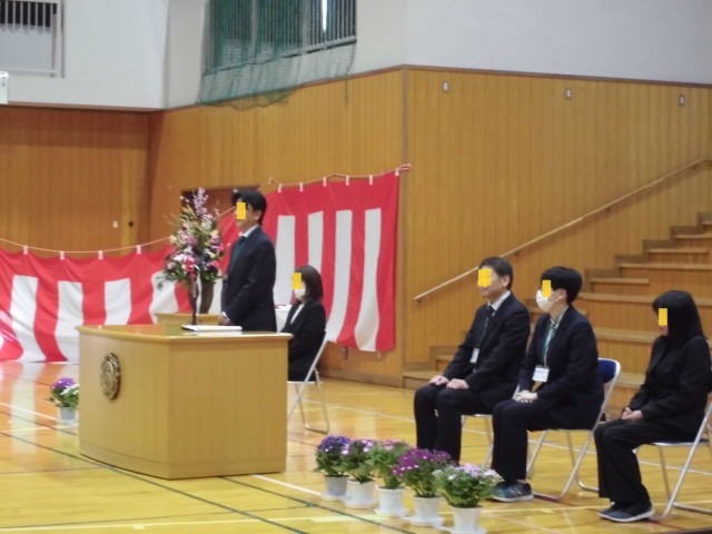 お一人ずつお話を頂いた後、花束贈呈、校歌合唱が行われました。