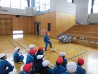 1年生体育の授業と、4年生新潟市校外学習出発の様子です。1年生は体育館でサッカー...