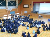 川治小5年生と西小5年生が南中学校に出かけ、南中学校区のいじめ見逃しゼロスクー...