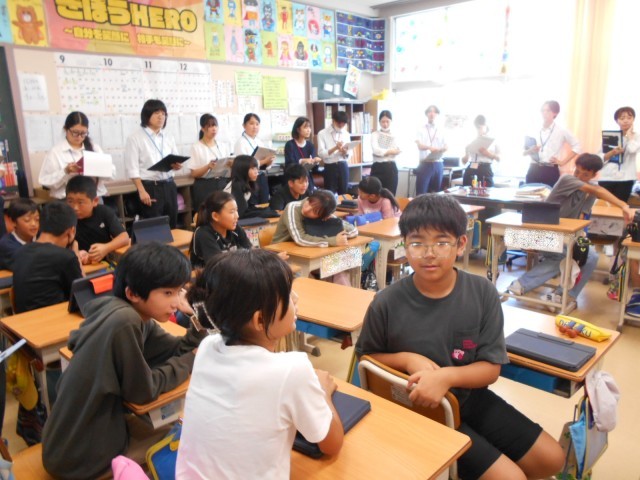 この授業は、中越地区の初任者17人が参集し、授業研修会として授業参観・協議会を行い研修を積みました。西小職員も参観を通して、授業づくりや学級づくりについて学びました。
