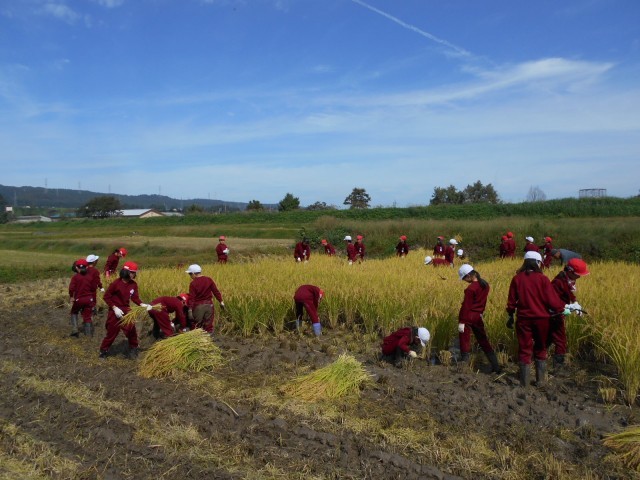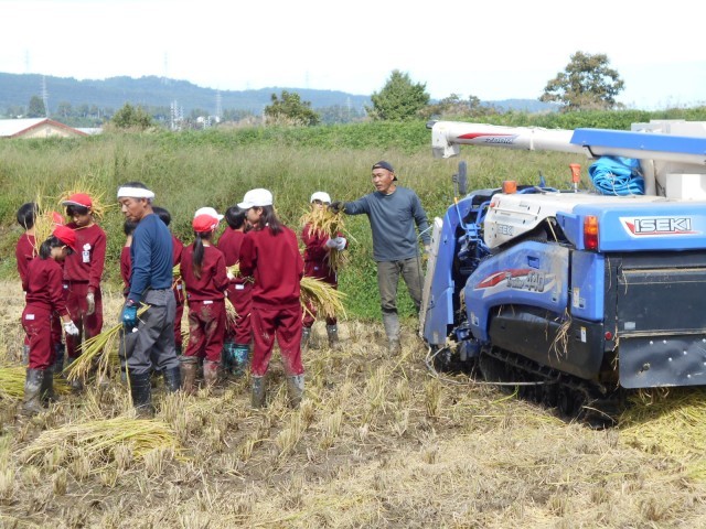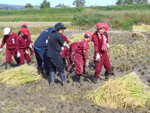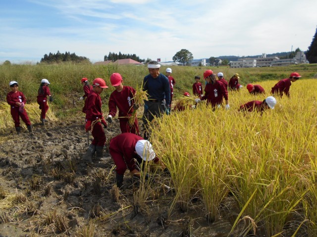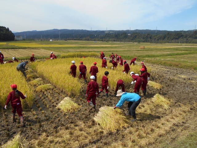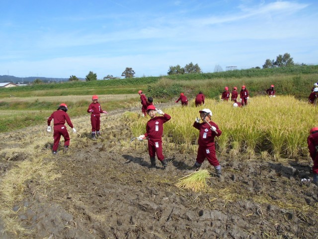 10月3日、5年生・総合「稲刈り」 公開日 2025/10/03 更新日 2025/10/03 お知らせ 5年生待望の稲刈りです。雨の影響で昨日から今日に順延となり、いざ田んぼへ。予想以上にぬかるんだ状態での稲刈りになりました。田んぼに足を取られたり、尻もち着いたりする5年生ですが、稲刈りを最後まで頑張り無事収穫完了しました。めったにない泥だらけの稲刈りになりましたが、頑張った分だけ収穫祭を楽しみたいですね。お疲れ様! +4