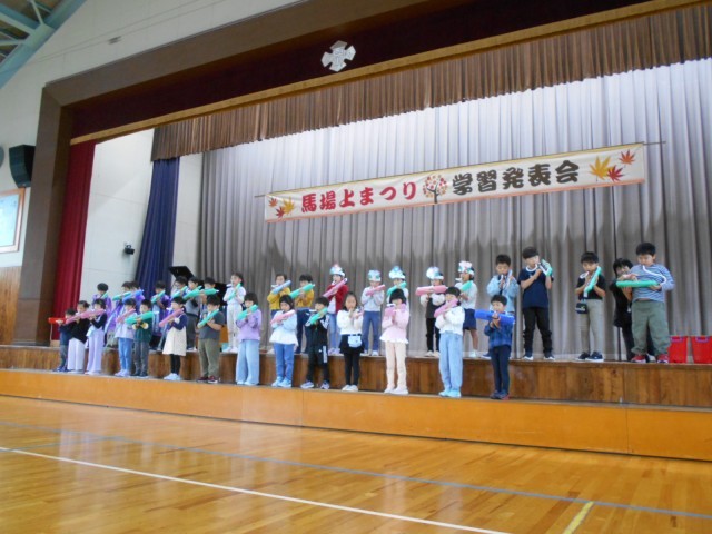 10月18日、馬場上まつり・1年生「カラフルパレード」 公開日 2025/10/18 更新日 2025/10/18 お知らせ 1年生の発表は「カラフルパレード~おおきなさつまいもとまほうのあさがお~」でした。4月入学し、成長した1年生「カラフル学年」の姿はいかがだったでしょうか。生活科での「あさがお」と「さつまいも」の栽培を軸に、今年初めて学んだ鍵盤ハーモニカの演奏を交え、元気な歌声やかわいらしい寸劇を披露しました。元気いっぱいの1年生の発表に温かい拍手をありがとうございました。 +2