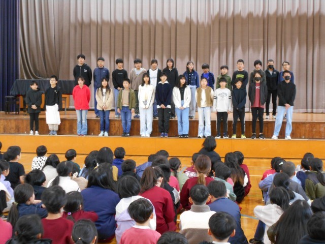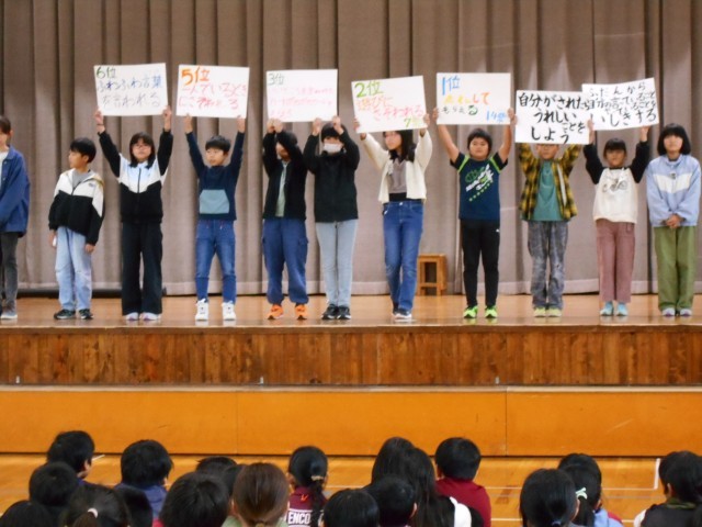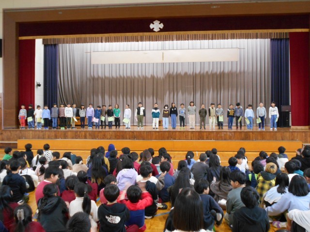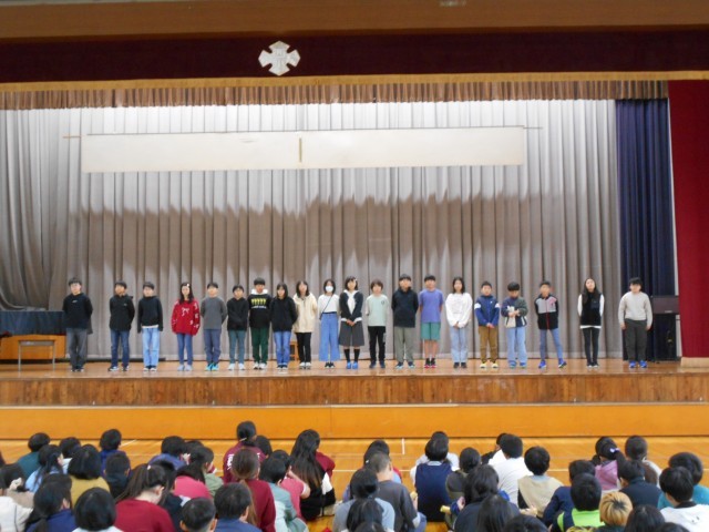 青葉企画委員会の進行で「いじめ見逃しゼロスクール集会」を行いました。企画委員による「いじめ」についての確認、新潟県警察作成の「いじめ防止教室」の動画視聴、各学年学級のいじめをしない・見逃さない取組発表と続くプログラムでした。各学年学級からの取組発表は、それぞれの学年学級で話合い・考えられたもので、とても大事なことばかりでした。そして、もっと大事にしてほしいのは、この取組発表を発表だけに終わらせないこと、この集会の後、始めること、継続していくことです。みんなでいじめをしない・見逃さない、いい西小を創っていきたいと思います。