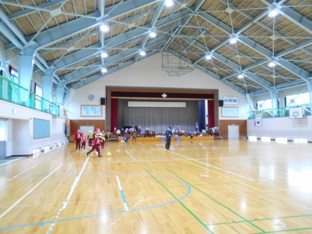 11月18日、5年生・体育「サッカー」 公開日 2025/11/18 更新日 2025/11/18 お知らせ どうやら、今日は初雪のようです。本当なら広いグラウンドなのでしょうが、5年生は体育館でサッカーの学習です。男子、女子に分かれてゲームを楽しんでいました。男子も女子も思い切りボールを追いかけ蹴り合っていました。
