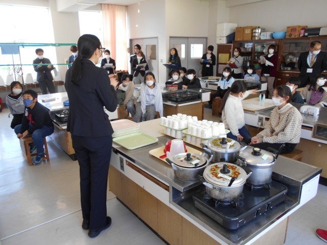 久保田栄養教諭と恩田担任のティームティーチングでの授業公開は、「食に関する指導研究会」として近隣の栄養教諭、学校給食に携わる皆さんや当校職員も研修として参観しました。