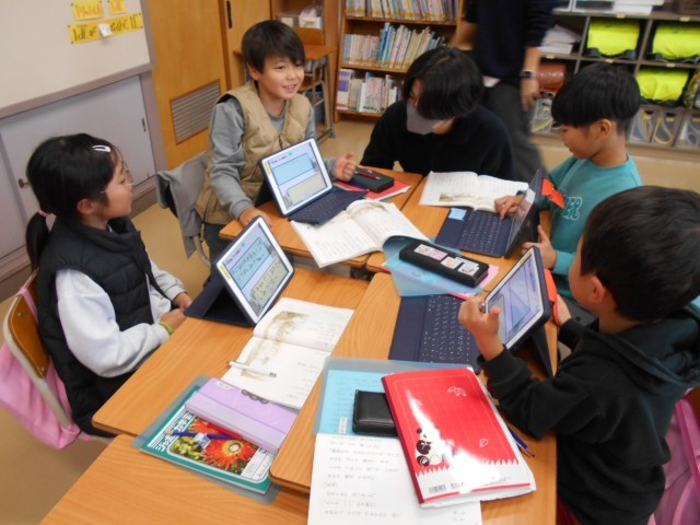 11月27日、2年生・国語「お手紙」 公開日 2025/11/27 更新日 2025/11/27 お知らせ 「お手紙」という物語は、がまくんとかえるくんの二人が、手紙が来る・来ないのやり取りから、心温まるお話なのですが、その心の変化を教科書の叙述をもとに意見交流し、読み取っていきます。タブレット端末や電子黒板などのICT機器を活用しながらの授業公開でした。端末操作など2年生のスキルはかなり上がっていますね。授業後は職員研修として協議会を行い、今後の授業づくりに生かしていきます。