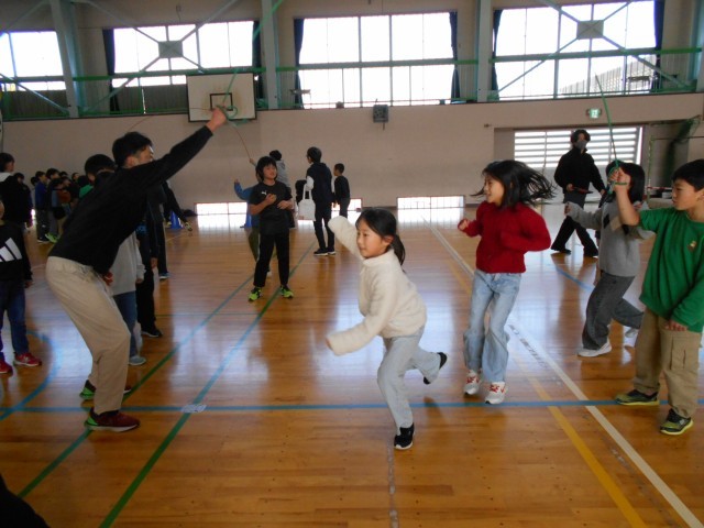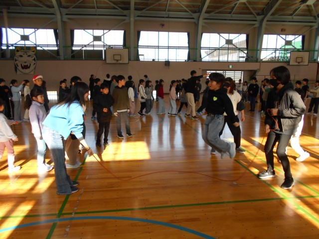 12月2日、スポーツ委員会「大繩大会(1~3年生)」 公開日 2025/12/02 更新日 2025/12/02 お知らせ 児童会・青葉スポーツ委員会企画の「大繩大会」が昼休みに行われました。今日は1~3年生が対象です。3分間で8の字跳びが何回できるか、チャレンジです。今年初めて挑戦した1年生もよく跳んでいました。2年生は昨年の経験を生かして楽しそうでした。そして、3年生はどうやら自己ベストの100回を超えたようで大盛り上がりでした。 +3