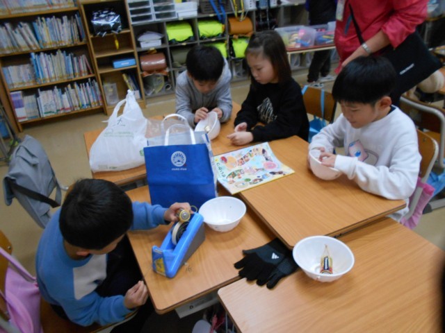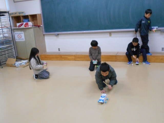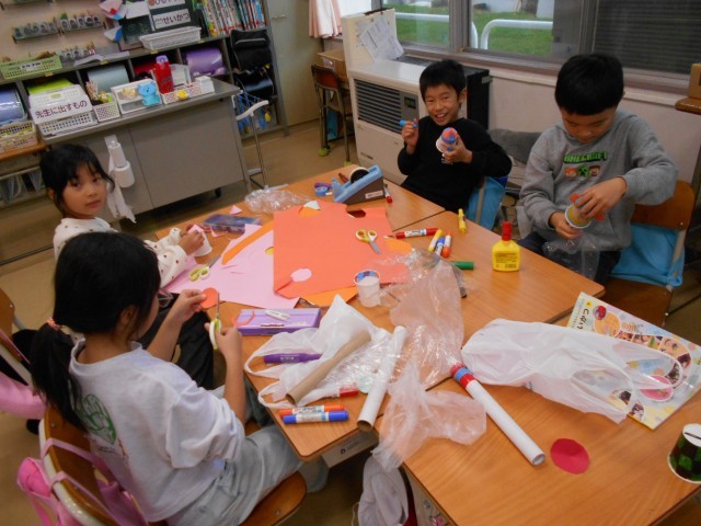12月3日、2年生・生活科「うごくおもちゃを作ろう」 公開日 2025/12/03 更新日 2025/12/03 お知らせ カップ麺容器やプラコップ、牛乳パックに割りばしなど、様々なリサイクル用品を中心に動くおもちゃ作りに挑戦です。輪ゴムを工夫して使うと、うまく動かせるようです。隣の多目的教室で試しながら、みんな夢中でした。