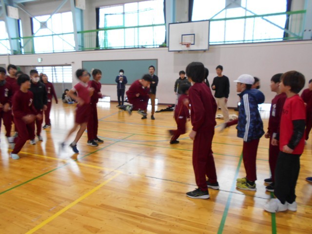 12月5日、スポーツ委員会「大繩大会③(4~6年生:2組編)」 公開日 2025/12/05 更新日 2025/12/05 お知らせ お待ちかねの「大繩大会」最終日。最後の出番は4~6年生の2組です。どのクラスも気合十分。次から次へと跳び続けていました。3日間の大繩大会でしたが、大会と言いつつ特に対戦形式ではありませんでしたが、どの学級も一致団結してスポーツに親しんでいました。 +3