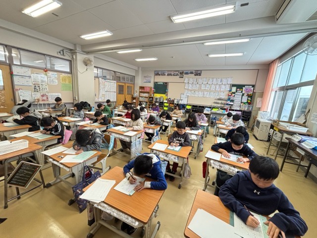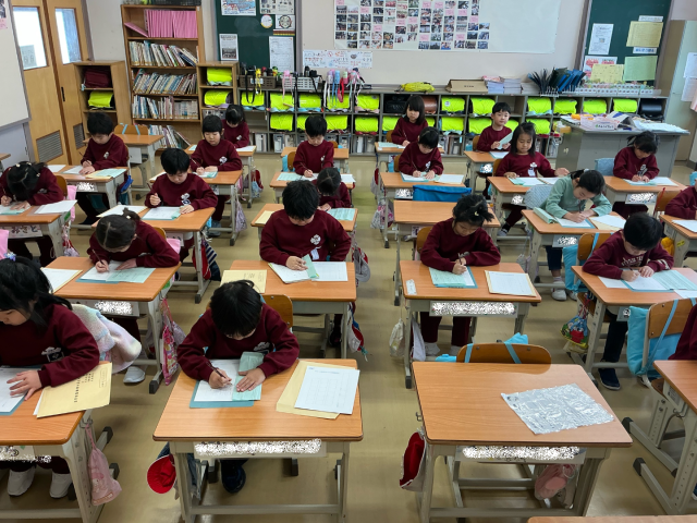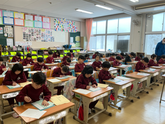 1月9日、校内書初め大会(1・2年) 公開日 2026/01/13 更新日 2026/01/13 お知らせ 1・2年生は、硬筆の書初めです。1年生も2年生も、鉛筆を走らせる音が教室に響いています。どの子も集中して書初めに臨んでいました。こういった日本ならではの伝統も、またよいものですね。 +1