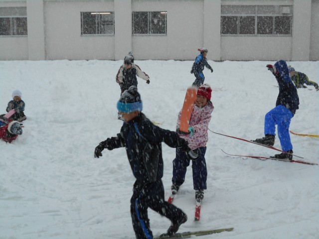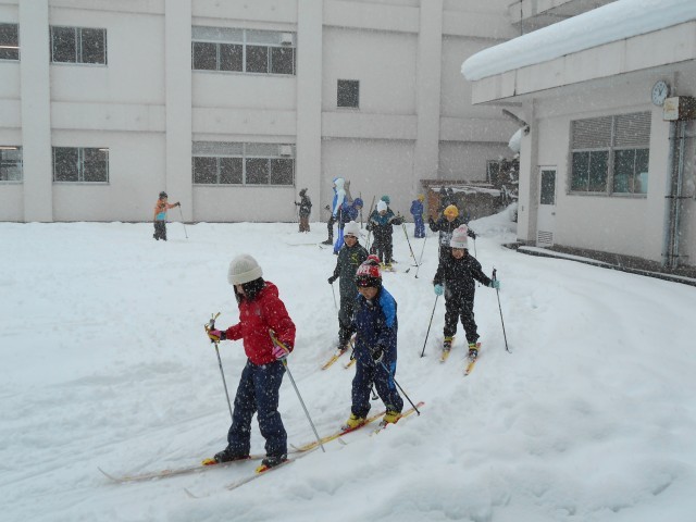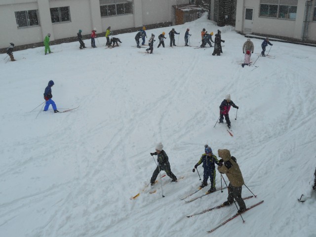 1月14日、2年生・体育「スキー遊び」 公開日 2026/01/14 更新日 2026/01/15 お知らせ なかなかの雪の中でしたが、今シーズン初のクロカンスキーに2年生が元気に飛び出しました。この日はグラウンドに下りず、中庭でスキーを走らせたり、鬼遊びをしたりして元気いっぱい楽しんでいました。雪に負けない今度は西小っ子ですね。でも、今度は天気だといいですね。 +1