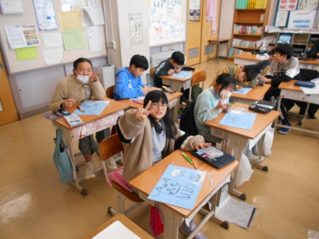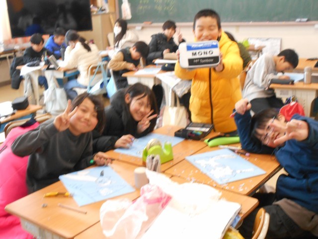 1月22日、5年1組・2組・図工「木版画」 公開日 2026/01/22 更新日 2026/01/22 お知らせ 5年生は楽しそうに木版画に取り組んでいました。自分の好きな題材(「クリスマスツリー」があれば「夏の風鈴」もあって面白いですよ)を選んで、彫り進めています。今のところ、手を切ってしまう子もなく、順調に進んでいるようです。(ちょっと時間が足りなさそう…) +3