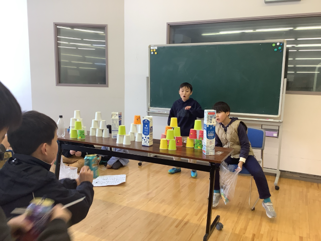 2月6日、2年生・生活「遊びランド」 公開日 2026/02/10 更新日 2026/02/10 お知らせ 2年生の遊びランドが、1年生を招待して開催されました。これまで時間をかけて準備を整えてきた2年生です。1年生を楽しませることができたかな? 表情を見ると、2年生も1年生も満足そうですね。大成功! +3
