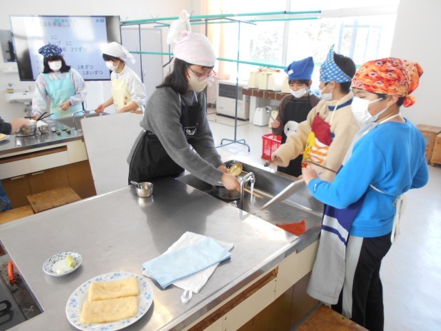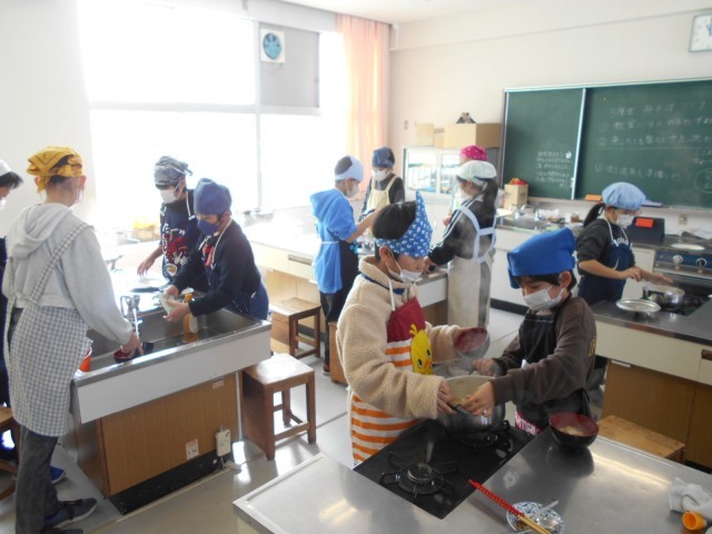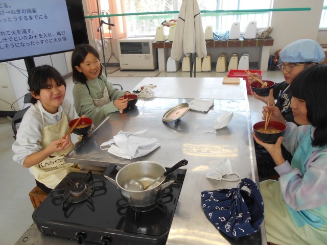 何やら家庭科室からいい薫りが・・・。5年生がみそ汁作りの調理実習です。具は油揚げとネギなのですが、おいしいんですよ。これがまた!(味見しました、ごちそう様!)。「おうちでつくってみたい」「わかめを入れたい」という声が聞けて嬉しいですね。土日の宿題に出たかもしれませんね。