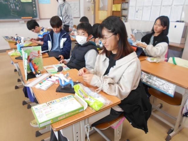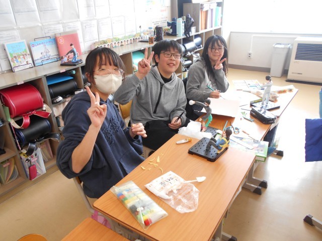 心棒にクラフト粘土をくっつけていき、未来の自分の姿をつくっています。いよいよ完成のようです。ポーズも衣装も様々で、「あ~、そうなんだね」と思わず見ている側もほっこりする作品に仕上がっていますね。