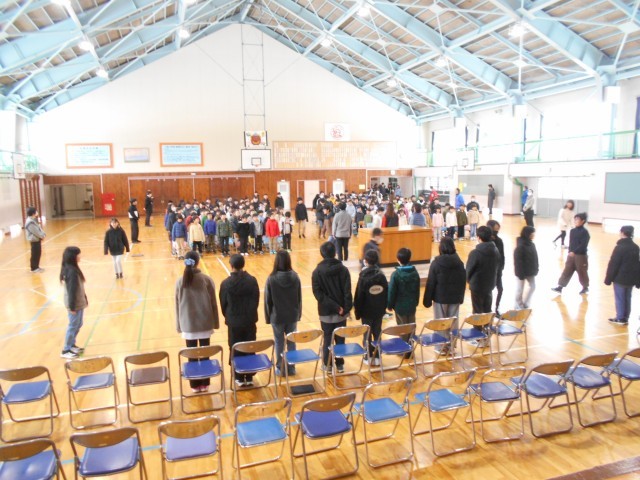 3月11日、卒業式全体練習 公開日 2026/03/11 更新日 2026/03/11 お知らせ 卒業式の全体練習が始まりました。感染症拡大防止のため、式歌や声出しはなしとし、座席位置の確認、入退場や敬礼などの動きが中心となりました。1年生はピアノの合図による敬礼も初めてだったようで、キョトンとした表情が愛らしかったです。卒業式まであと2週を切りました。今年度も大詰めを迎えました。