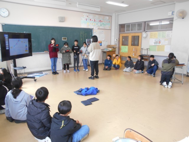 3月11日、5年生・学活「6祝会準備」 公開日 2026/03/11 更新日 2026/03/11 お知らせ 卒業式がいよいよ迫ってきており、明日の「6年生の卒業を祝う会」を内容を変更し行う予定です。感染対策として、なるべく異学年が直接的に関わらないように前半のレクリエーションをオンラインで各教室をつなぎ、後半の6年生の感謝の出し物を体育館で披露するというカタチに変更しました。5年生、頑張っています。
