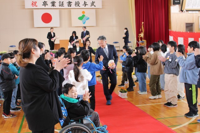 離任式を行いました。転出職員を心を込めて送り出しました。次の学校でのご活躍をお祈りします。保護者、地域の皆様には大変お世話になりました。ありがとうございました。