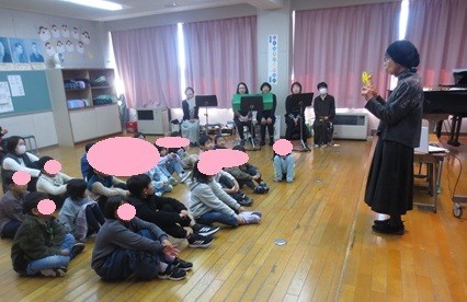 この活動もここ数年行われており、子どもたちは、毎年、大変楽しみにしています。ふきのとうの会の皆様は、数週間前から学校にお越しいただき練習されていました。おかげで、子どもたちにとって、とても素敵な時間となりました。ありがとうございました。