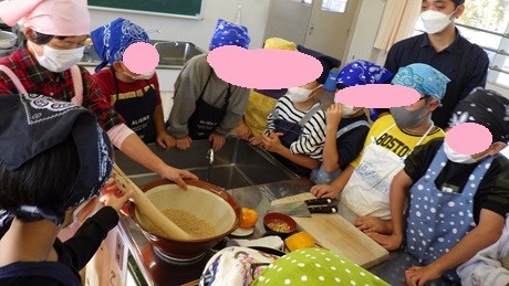 ふるさと学習で郷土料理を作りました。今年度も押木靖江様を講師にお迎えし、3・4年生と5・6年生と2回に渡り実施しました。2回とも食育推進委員の方にもお越しいただき、教えていただきました。1回目の3・4年生では「柿の白和え」「簡単大学かぼちゃ」「みそおにぎり」を作り、2回目の5・6年生では「あっさりポテトサラダ」「芋がらとむかごの混ぜご飯」を作りました。地元の食材をたくさん使い、子どもたちは、ふるさと十日町の味を堪能していました。地産地消の大切さや料理の楽しさを教えていただいた、押木様、食育推進委員の皆様、大変ありがとうございました。