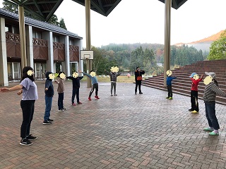 しっかり眠った人も、そうでない人も(?)、朝のさわやかな空気を吸って元気に体操で目を覚ましていました。体操の後は朝食をいただきました。おいしい朝ご飯で2日目のエネルギーを補給し、準備万端です。