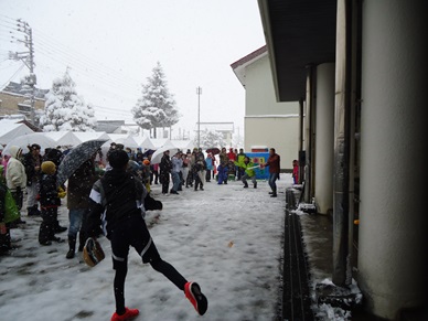 有志で参加してくれた子どもたちが、150周年記念事業でつくった「児童会歌」を、地域の方に披露しました。この日は、思いがけない大雪となりましたが、集まってくださった人たちの心を温めるような歌声が響きました。