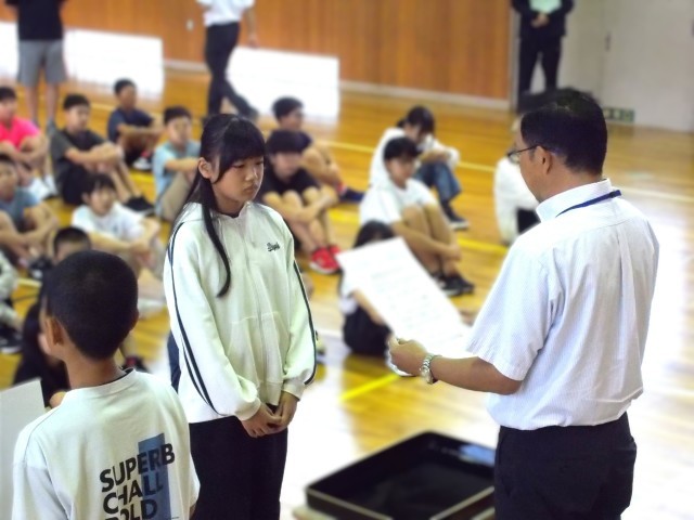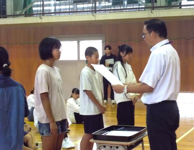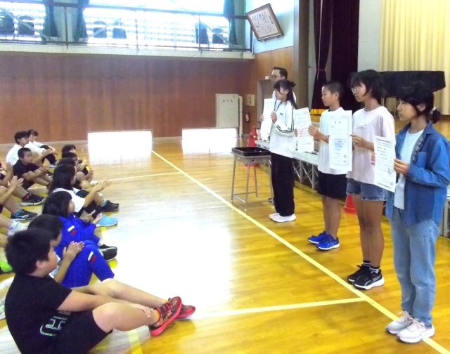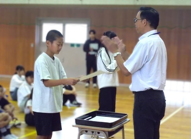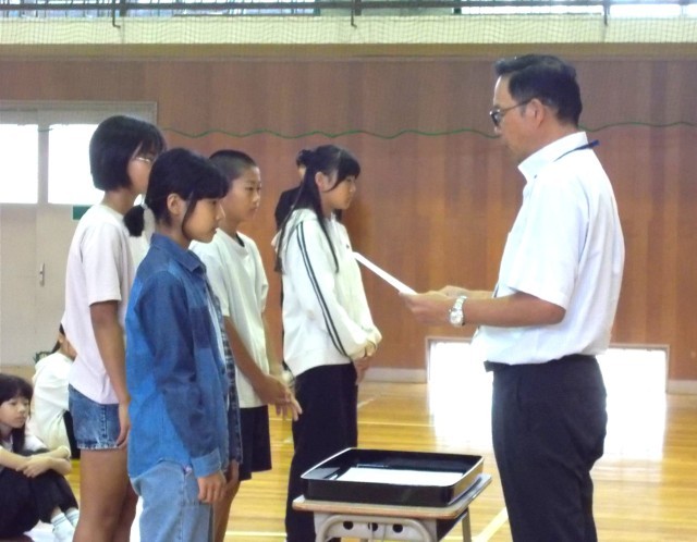郡市発明工夫模型生物標本展、科学研究発表会、小学校親善陸上大会の表彰式を行いました。