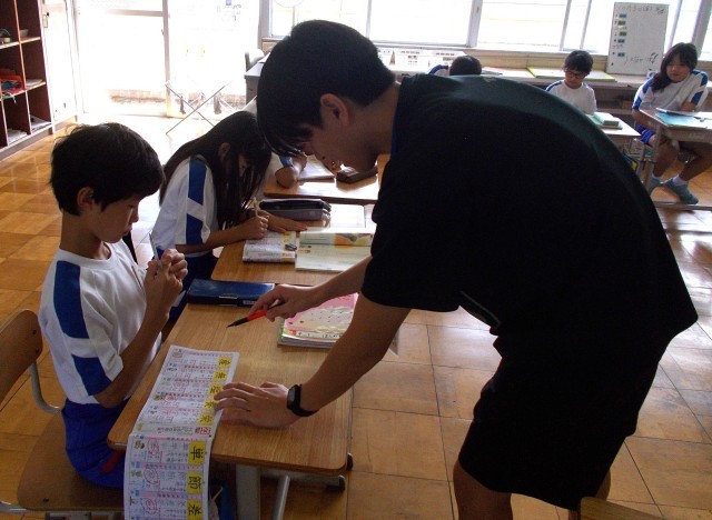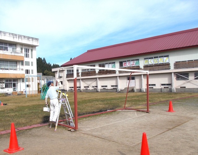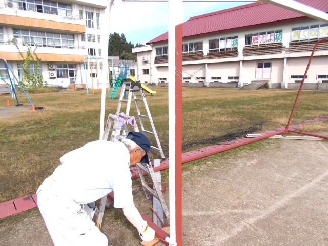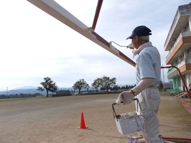 昨日の下塗り作業に続き、2回目の塗装作業に山口様が来校されました。