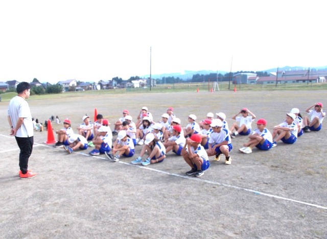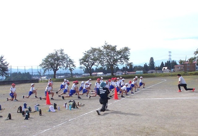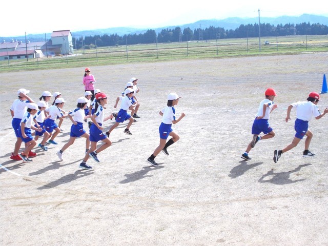 下学年、上学年とも合同体育の時間に、持久走大会に向けた記録会を行いました。